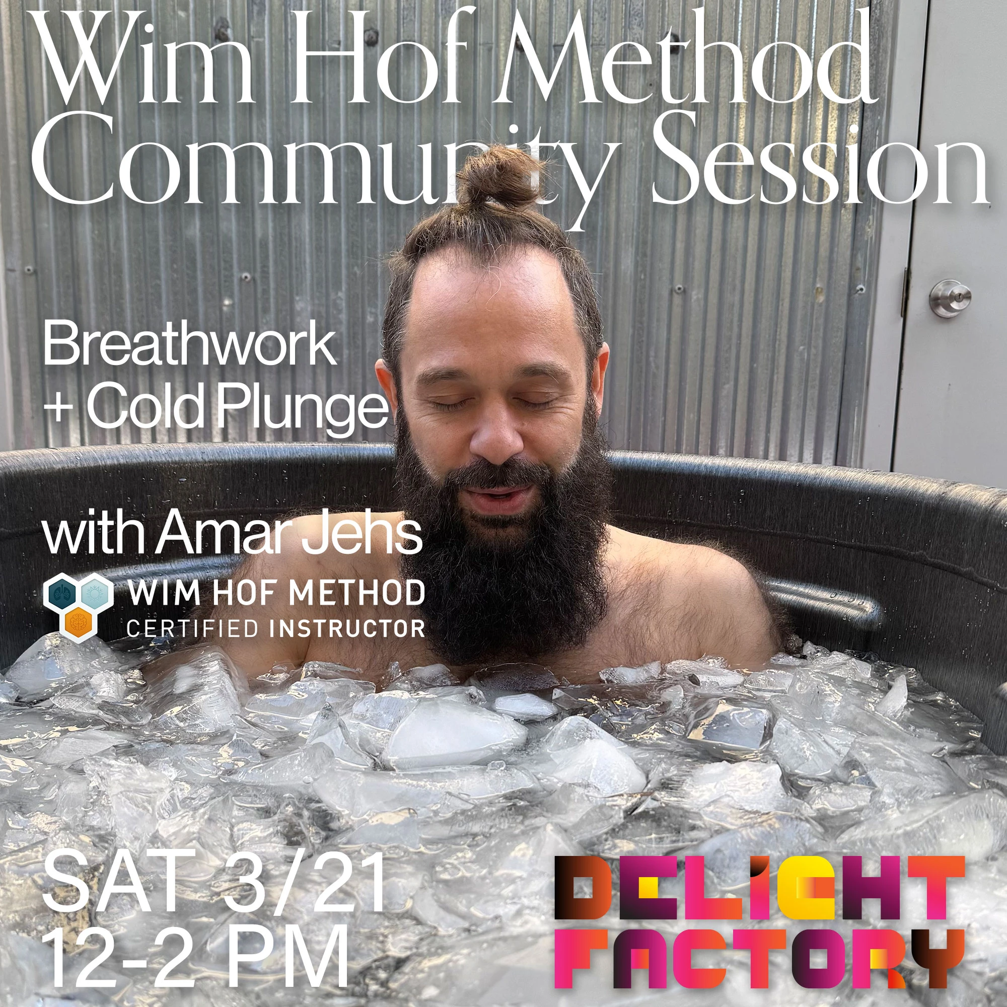 Join Certified Wim Hof Method Instructor Amar Jehs for a Breathwork & Cold Plunge Community Class! You will be guided through a set of breathing exercises, learn about nervous system regulation, and have the opportunity to do an outdoor ice bath immersion.