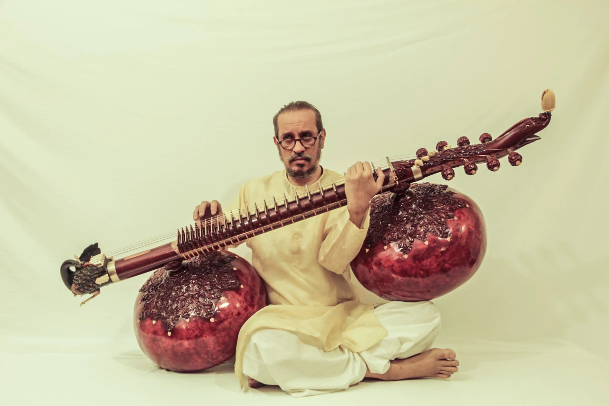 Dagarvani dhrupad is a deeply rooted and experimental performance tradition that has been practiced continuously by members of the Dagar family since the 15th century. Strictly a vocal music for most of that history, the rudra veena, one of the oldest string instruments in Hindustani music, was used purely for private study and accompaniment. It was only in the twentieth century that Ustad Zia Mohiuddin Dagar began to perform publicly with the rudra veena as a solo instrument, and, against his own father’s wishes, made physical modifications to the instrument to make it suitable for public performance.