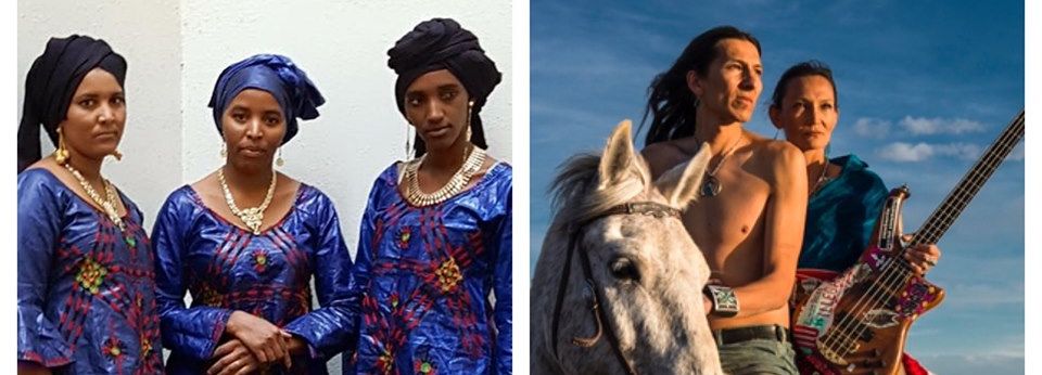 Les Filles de Illighadad are all from the village of the same name, a secluded commune in central Niger, far off in the scrubland deserts at the edge of the Sahara. The surrounding countryside supports hundreds of pastoral families, living with and among their herds, as their families have done for centuries. Fatou Seidi Ghali, lead vocalist and performer of Les Filles de Illighadad is one of the only Tuareg female guitarists in Niger. Sneaking away with her older brother’s guitar, she taught herself to play. While Fatou’s role as the first female Tuareg guitarist is groundbreaking, it is just as interesting for her musical direction. In a place where gender norms have created two divergent musics, Fatou and Les Filles de Illighadad are reasserting the role of tende in Tuareg guitar. In lieu of the djembe or the drum kit, Les Filles de Illighadad incorporate the traditional drum and the pounding calabash, half buried in water. The forgotten inspiration of Tuareg guitar, they are reclaiming its importance in the genre and reclaiming the music of tende.