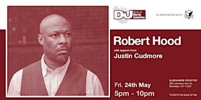 ☼ Performances└ Robert Hood└└ Justin CudmoreDoors: 5PMPerformances: 5PM - 10PMRoof deck closes at: 4AMstick around for 60/40: A Diamond and Ruby Jubilee etc... tickets will be available downstairs on the ground floor. there’s always lots else to explore besides the rooftop! most nights are multi-room celebrations, featuring a dynamic lineup of local and international talent in the hall and zone one. if you haven’t noticed already, our loft tucked into the 2nd floor now has its own dj booth and hosts free parties throughout the week. make sure to check our calendar at www.elsewherebrooklyn.com/events to see what else is happening at elsewhere the night of your visit!embedded in the legacy of detroit’s legendary club scene, robert hood is a techno giant whose long career shows no signs of slowing down. credited as the founder of minimal techno, hood has produced prolifically, collaborating with artists like jeff mills and mike banks and releasing music under several aliases including the vision, and floorplan. having graced the cover of dj mag this past january, hood takes to the elsewhere rooftop as a part of the special “dj mag presents: best of north america” party series and is supported by rising local producer and dj justin cudmore----☼ About Elsewhere RooftopElsewhere Rooftop is a seasonal large outdoor bar and events space, offering a signature frozen drink menu, shows & parties, sunset DJ sessions, food pop-ups, film screenings, art happenings, and much more all summer. Full calendar at https://bit.ly/2UMjRb3☼ Hours*The Rooftop usually opens at 6PM Monday through Friday and 2PM Saturday & Sunday, but is only open when the following events are happening: https://bit.ly/2UMjRb3 — please do make sure to check the rooftop calendar before stopping by!☼ FoodFood is provided every Friday through Sunday this season by our good friends at Holy Ground BBQ, Brooklyn's tastiest BBQ pop-up. You can view the full menu here: https://bit.ly/2WHCB8J☼ Rain or Shine PolicyAll shows and events on the Rooftop are rain or shine! If the weather prevents us from carrying on, we will update customers via our website, Facebook, Instagram, Twitter, Eventbrite and Resident Advisor.☼ Safer Space PolicyELSEWHERE MAINTAINS A STRICT ZERO TOLERANCE POLICY FOR HARASSMENTElsewhere is intended to be a safe space to enjoy music, art, expression, and free play. Our staff are trained to remove individuals engaging in any form of sexual harassment, acts of aggression (including leering), racism, misogyny, transphobia, homophobia, religious bigotry, or hatred and discrimination of any kind.If you see or experience any unwanted attention, contact, bullying, harassment, or behavior of any kind that makes you uncomfortable, please speak out and notify our staff immediately.Please read our full policy at: https://bit.ly/2VxByad