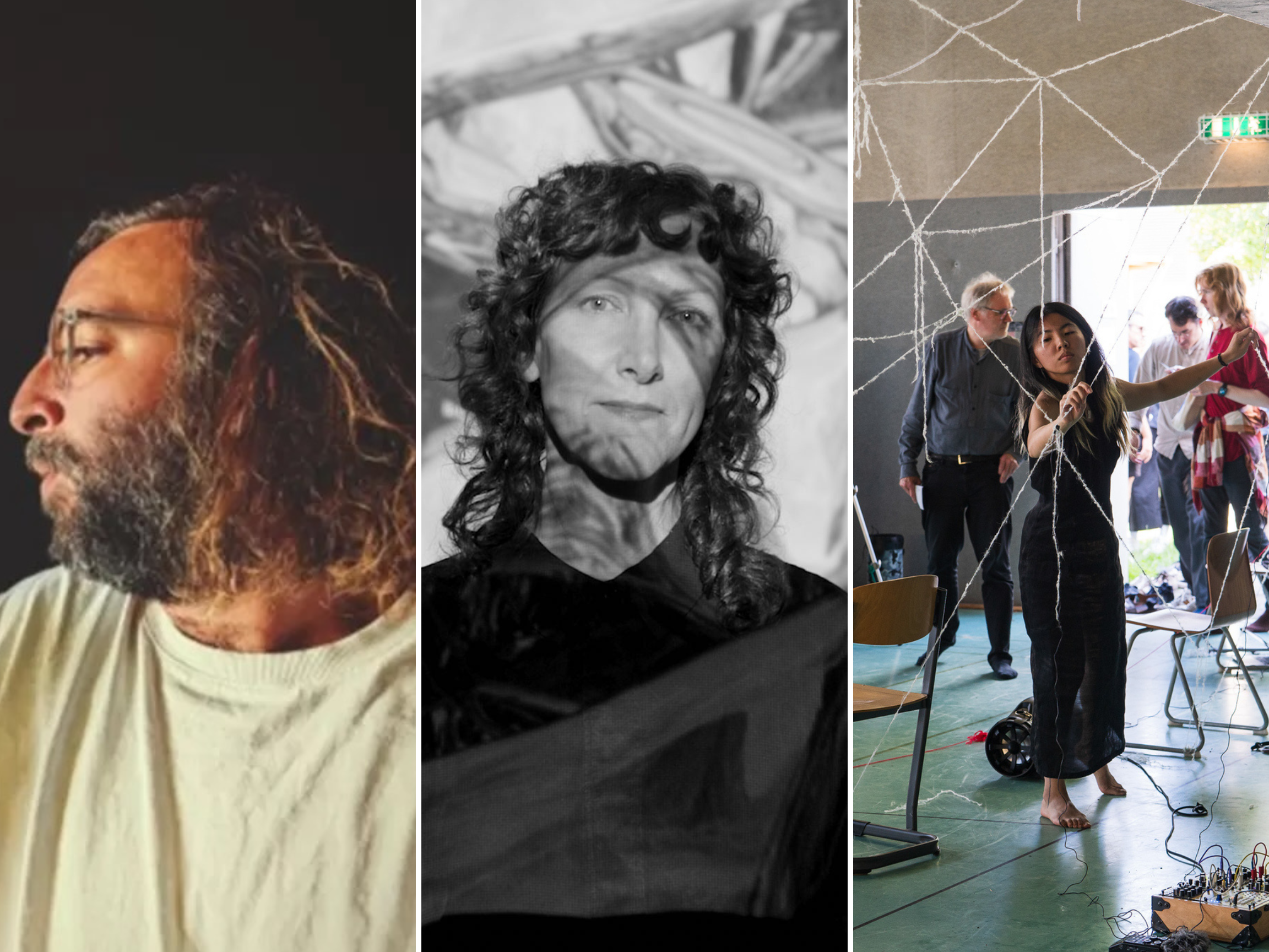 Ivy Fu: Tether is a performance with ambisonic soundscapes, body movements, and e-textile installation consisting of 12 individual strings crocheted with conductive yarns. Fragile and visceral materialistic, the yarns starve the electrical current moving through the circuit that outputs 12 individual wavering drones in 12 channels. As the artist and audience interact and change the tension and shape of the yarn, the intimate, ephemeral shape of the installation creates a constant morphing spatial sonic image that illustrates the relational nature of the movement, sound, and space. The bodies struggle in negotiating its relationship to the yarn, currents thin and waver, the analogue signals stutter or flow, turning simple sawtooth and square waves into expressions of emotionality and hesitation.
