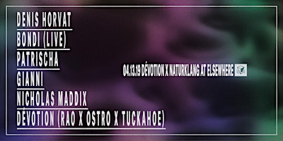 DÉVOTION x Naturklang New York w/ Denis Horvat, BONDI (Live), Patrischa, Gianni, Nicholas Maddix & Dévotion (Rao x Ostro x Tuckahoe) @ Elsewhere (Hall)