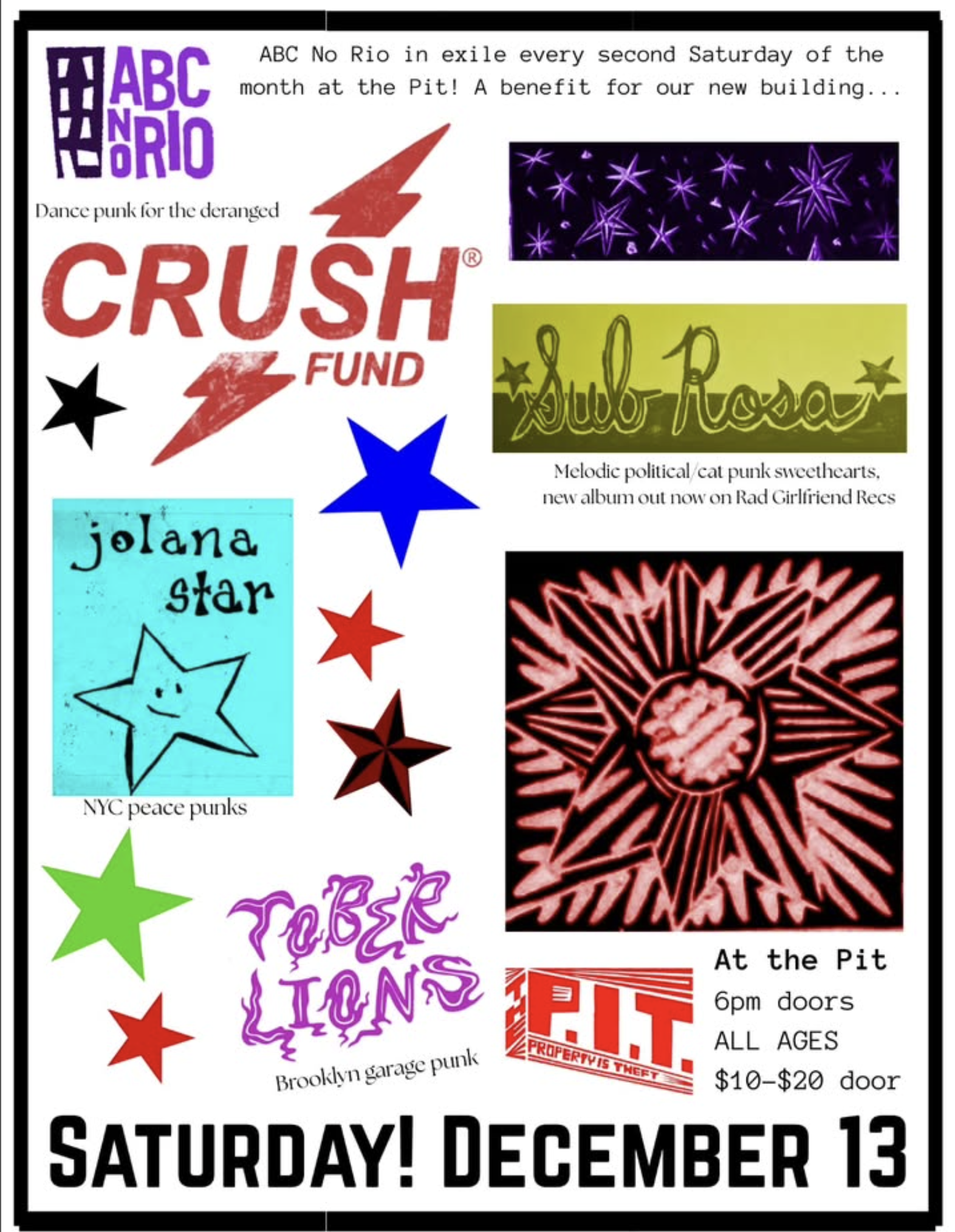 Saturday 12/13 ABC No Rio in Exile kicks off monthly punk and hardcore shows every second Saturday of the month at everyone’s favorite Brooklyn anarchist bookstore @the_p.i.t._
