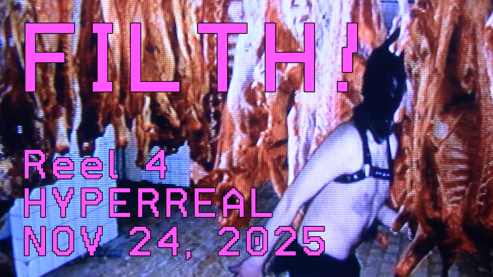 Our finale screening, as premiered in Chicago, this reel of FILTH! has food fucking scenes (joint nad solo), homosexual creatures lurking in the night, fetishism of media and men, and a transbian hyper pop fueled uhaul narrative, plus! clips pulled right from the collections of our friends at BIJOU(world.com) + from deep within The Vault.
