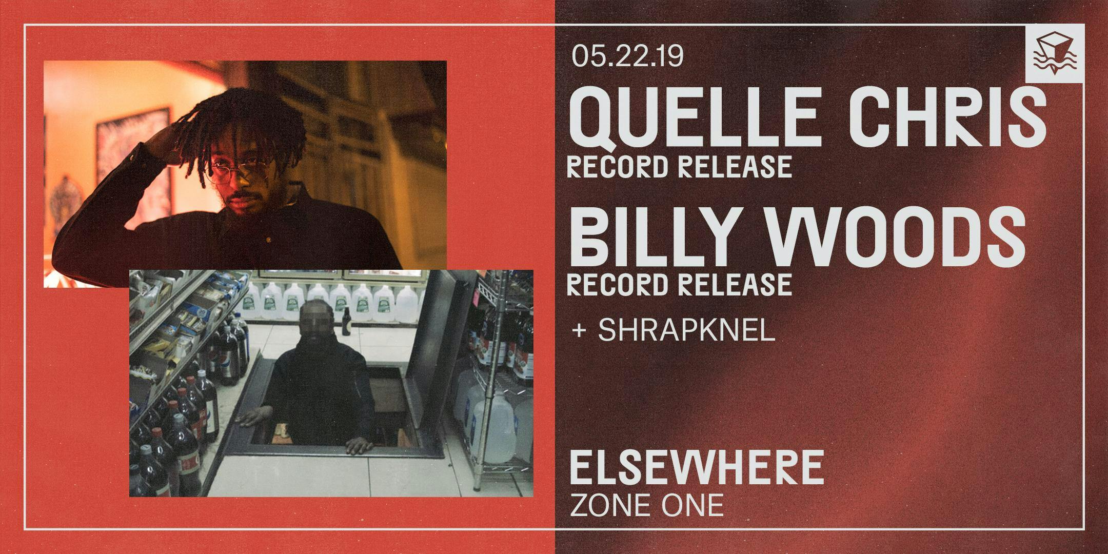 brooklyn-based rapper and producer quelle chris has established an impressive track record, consistently dropping solo and collaborative releases since his start in the 2010’s. his latest full-length release, 'guns,' speaks directly to gun violence and gun control but also to metaphorical weapons wielded for good or evil, all atop a blend of masterfully made lo-fi beats and carefully curated samples. dc based rapper and co-headliner billy woods is fresh off the release of his collaboration with producer kenny segal, 'hiding places.' the album delivers incisive social critique set atop a disorienting but intriguing sonic backdrop.---- ☼ About Elsewhere RooftopElsewhere Rooftop is a seasonal large outdoor bar and events space, offering a signature frozen drink menu, shows & parties, sunset DJ sessions, food pop-ups, film screenings, art happenings, and much more all summer. Full calendar at https://bit.ly/2UMjRb3 ☼ Hours*The Rooftop usually opens at 6PM Monday through Friday and 2PM Saturday & Sunday, but is only open when events are happening — please do make sure to check our venue calendar before stopping by here: https://bit.ly/2VHNafy ☼ FoodFood is provided every Friday through Sunday this season by our good friends at Holy Ground BBQ, Brooklyn's tastiest BBQ pop-up. You can view the full menu here: https://bit.ly/2WHCB8J ☼ Rain or Shine PolicyAll shows and events on the Rooftop are rain or shine! If the weather prevents us from carrying on, we will update customers via our website, Facebook, Instagram, Twitter, Eventbrite and Resident Advisor. ☼ Safer Space PolicyELSEWHERE MAINTAINS A STRICT ZERO TOLERANCE POLICY FOR HARASSMENTElsewhere is intended to be a safe space to enjoy music, art, expression, and free play. Our staff are trained to remove individuals engaging in any form of sexual harassment, acts of aggression (including leering), racism, misogyny, transphobia, homophobia, religious bigotry, or hatred and discrimination of any kind. If you see or experience any unwanted attention, contact, bullying, harassment, or behavior of any kind that makes you uncomfortable, please speak out and notify our staff immediately.Please read our full policy at: https://bit.ly/2VxByad