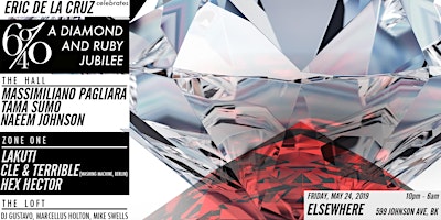 60/40: A Diamond and Ruby Jubilee w/ Massimiliano Pagliara, Tama Sumo, Naeem Johnson, Lakuti, Cle B2B Terrible, Hex Hector, DJ Gustavo, Marcellus Holton, Mike Swells & Xander @ Elsewhere