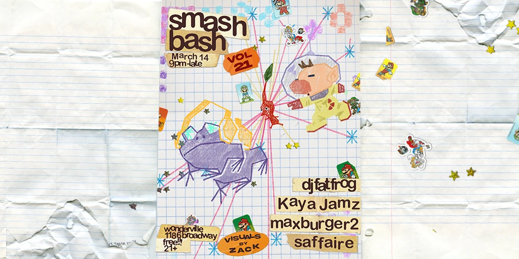 Smash Bash returns for the new year! The 21st edition yet again invites gamers of all skill levels to compete in a vivacious Smash Bros Ultimate tourney, soundtracked by DJs spinning house, club, VGM, and more.
