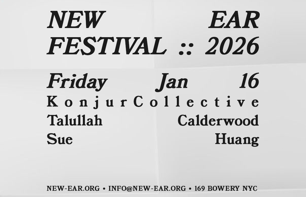 The annual New Ear Festival fulfills one of New Ear Inc.’s core missions—to help restore creative, experimental spirit on the ground floor level of downtown Manhattan. The festival showcases time-based art in all its forms—from sound installations and video screenings to storytelling and physical movement. Each evening will be live-streamed via Wave Farm / WGXC-90.7 FM.