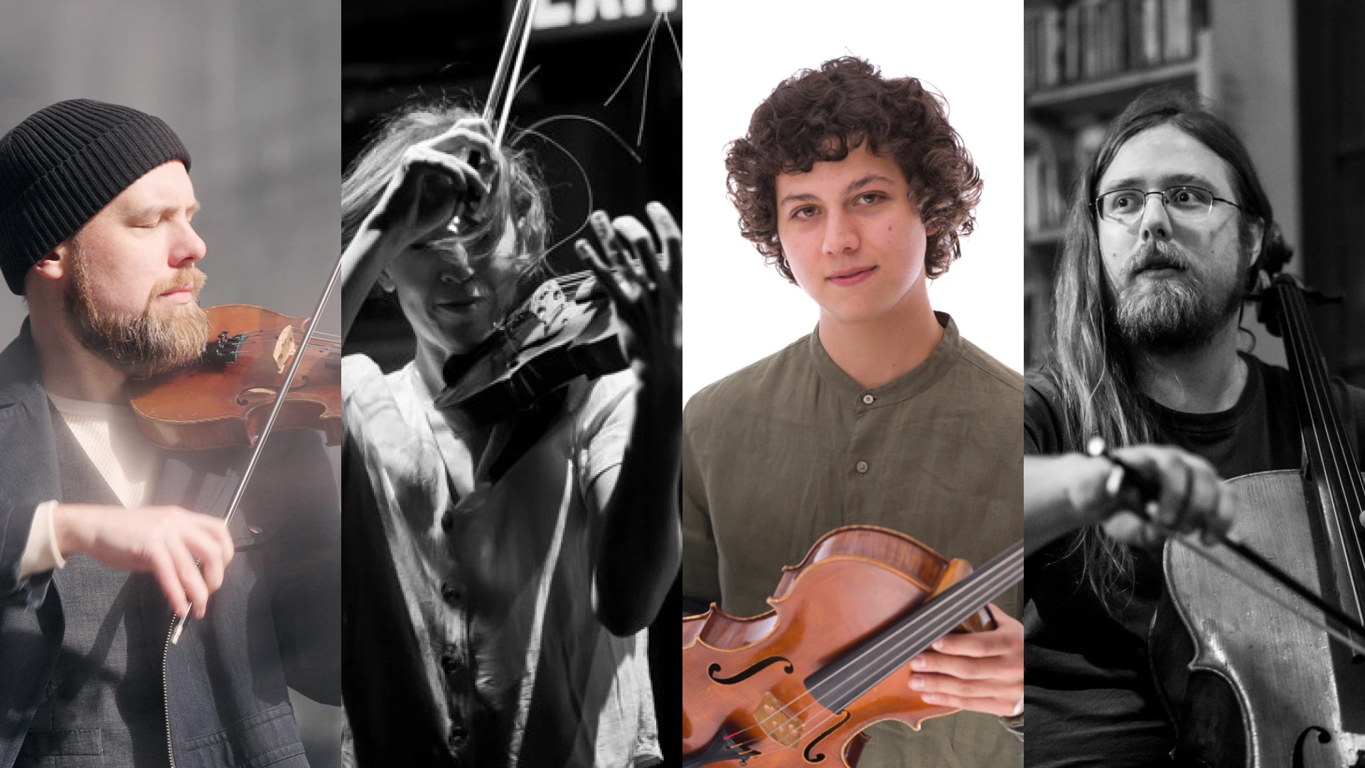 Apmonia String Quartet is a freshly formed group featuring Josh the mononym Modney and Sabrina Salamone on violins, Julian Seney on viola, and Tyler J. Borden on cello. Based in NYC, the group’s ethos hinges on a rigorous commitment to both interpretation and improvisation in contemporary experimental music. With longstanding individual commitments to a wide array of practices across the spectrum of contemporary music, this group is excited to bring their collective experience to bear in future collaborations and program curation.