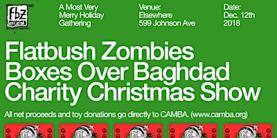 THANK YOU again to the fans for donating so generously during the BoxesOverBaghdad Toy Drive. We are opening up a few extra tickets for sale TODAY at 12pm EST. ALL net proceeds go directly to CAMBA (www.camba.org). GET 'EM BEFORE THEYRE GONE.All net ticket proceeds go directly to CAMBA (https://www.camba.org/).About CAMBAStarted in 1977, CAMBA is a nonprofit agency that connects people with opportunities to enhance their quality of life. CAMBA offers integrated services and programs in: Economic Development, Education & Youth Development, Family Support, Health, Housing and Legal Services. CAMBA serves more than 45,000 individuals and families, including 10,000 youth, each year. Learn more about CAMBA’s life-changing services at www.camba.org.