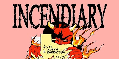 Parade of Flesh presentsIncendiary at Barracuda Austin (outside)Long-time return to TX - Austin and Dallas onlywithHomewrecker, Judiciary, Creeping Death, and Skeleton9:00pm Skeleton 9:45pm Creeping Death 10:30pm Judiciary 11:15pm Homewrecker 12:00am INCENDIARY---Cash only at the door after online ticket sales end.