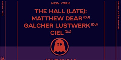 **The tickets above guarantee admission ONLY to the late portion of the Ghostly 20 event at Elsewhere from 11PM-4AM.Click here for early-only and combined tickets!To mark its 20th anniversary, record label Ghostly International has launched a series of events throughout 2019 highlighting cities they love, communities that inspire them, places and people vital to their culture of music, art, design, and creativity. On Saturday, October 5th, the celebration heads to Brooklyn’s Elsewhere for a full night of performances and DJ sets from Ghostly artists and friends spread across the venue's multi-room layout. The event is divided into two parts with the early show taking place in The Hall and Zone One, featuring live sets by Gold Panda, Shigeto, Ouri, The Sight Below and more. The late show continues in The Hall with DJ sets by Matthew Dear, Ciel, and Galcher Lustwerk. The Loft is open all night long hosting DJ sets by Starchild & The New Romantic, Michna, and Xeno and Oaklander.Tickets available for early, late, or both tiers combined.The Hall: Matthew Dear (DJ)Galcher Lustwerk (DJ)Ciel (DJ)The Loft: Michna (DJ)Xeno & Oaklander (DJ)
