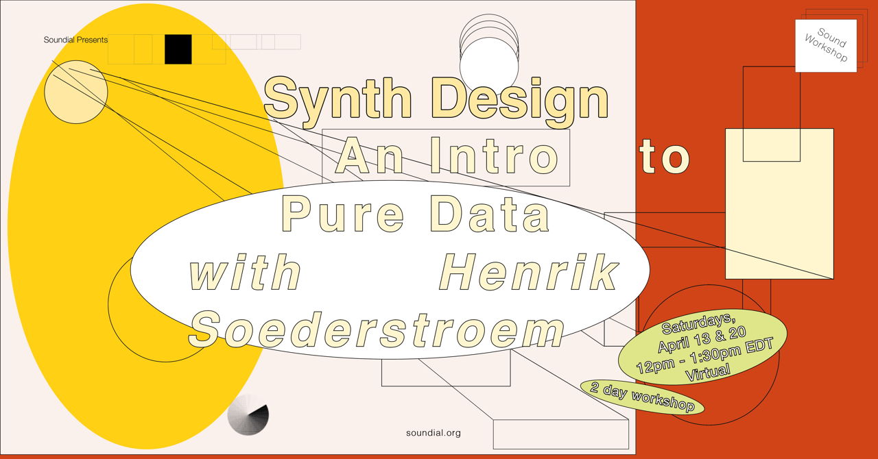 During the first session, teaching artist Henrik Soederstroem will cover the fundamentals of the Pd workspace, including node structure, data types, objects, and inputs and outputs. We’ll conclude the session with constructing a drone bank synthesizer. This synthesizer produces continuous, sustained sounds which can be used to add ambient texture or build layers in electronic and experimental compositions.