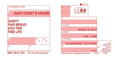 LINE-UP: EAST COAST G HOUSE PRESENTS: SANITY, PAPI BRAVO, EGO TRIP
