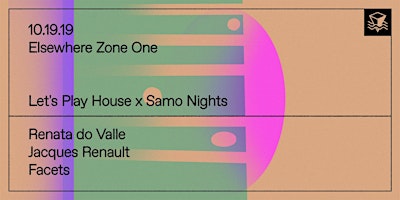 Let's Play House x Samo Nights w/ Renata do Valle, Jacques Renault & Facets @ Elsewhere (Zone One)