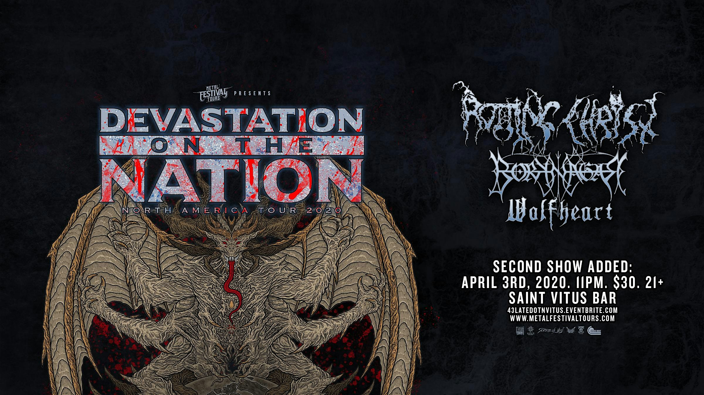 Late night show added due to popular demand! Devastation of the Nation returns with Rotting Christ, Borknagar, & Wolfheart.