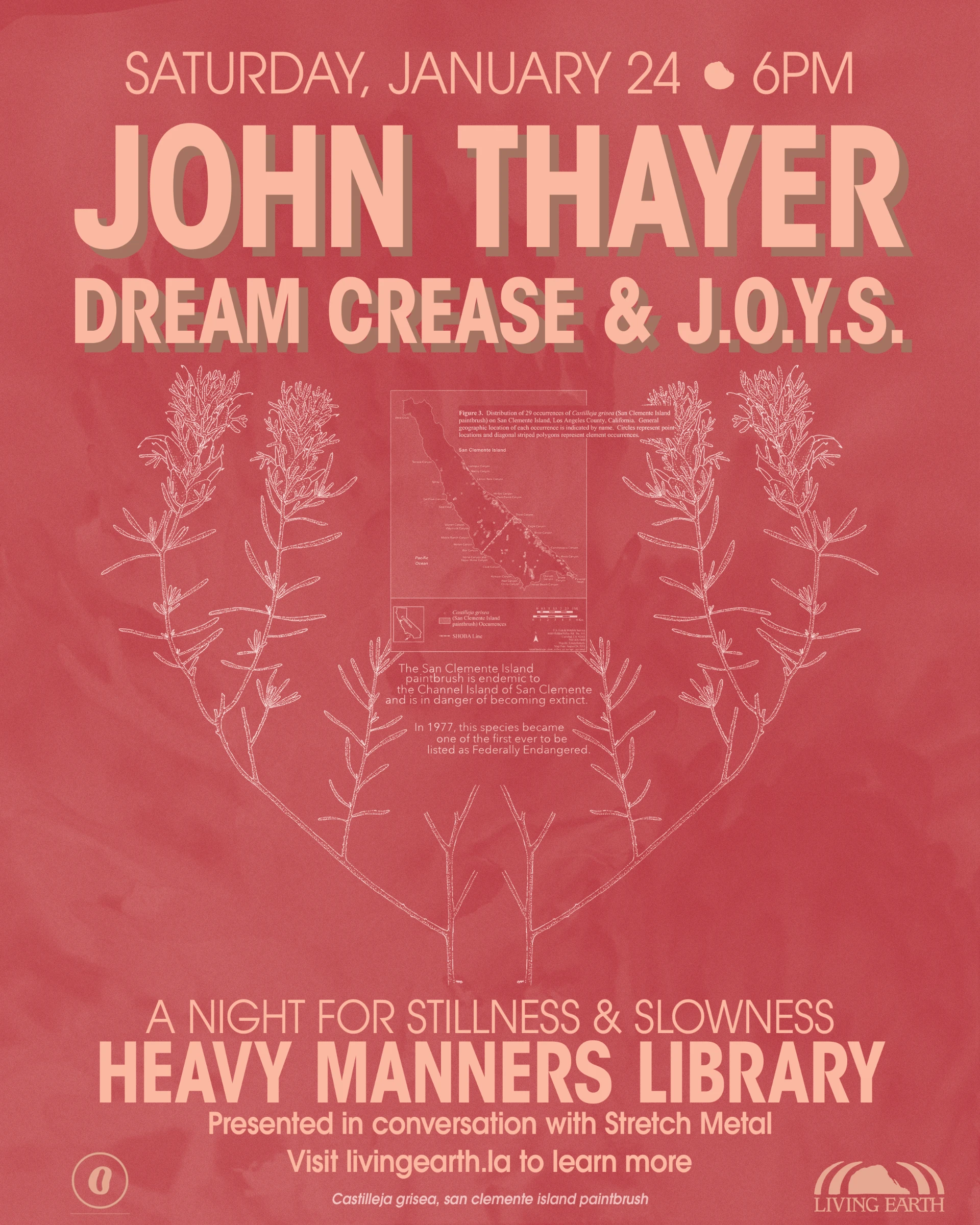 This is our first time gathering with our longtime friends of Heavy Manners, as well as co-presenting with Stretch Metal, and we’re going to take it slowwww. Pull up for an evening of long form patient music from John Thayer, visiting us from upstate NY to celebrate his new album Winds Gate out now with the deep heads of Aural Canyon. LA hero Dream Crease is sitting in with us tonight for a set of reverberant cavernous book shop ambience & setting the tone for the night is the debut LA performance of Ramon Narvaez’ j.o.y.s. project, who already has a gorgeous record out now with the venerable Whited Sepulchre Records who’ve released incredible music over the years from claire rousay, Patrick Shiroishi, White Boy Scream, Lake Mary, Midwife, and so many of our buds.