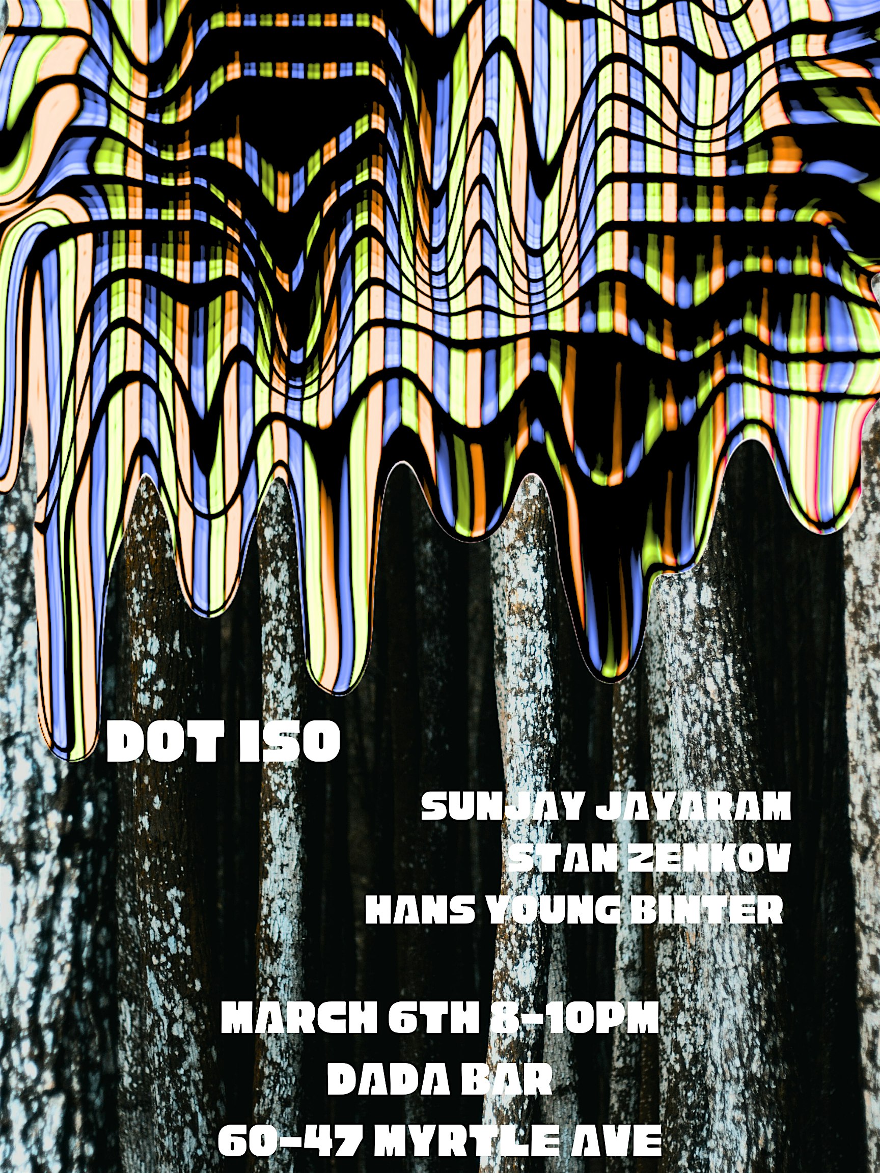 Dot Iso is a NYC-based trio performing improvised music. Co-billing with Sunjay Jayaram, Stan Zenkov, and Hans Young Binter.