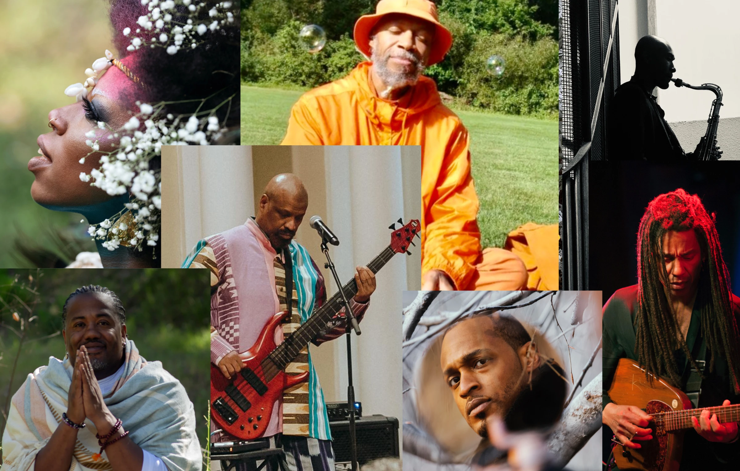 Photo credits from top left: Erik Carter; Laraaji; Ariella Villefranche; Grace Oh; Christian Stewart; Tcheser Holmes; Enid Farber.