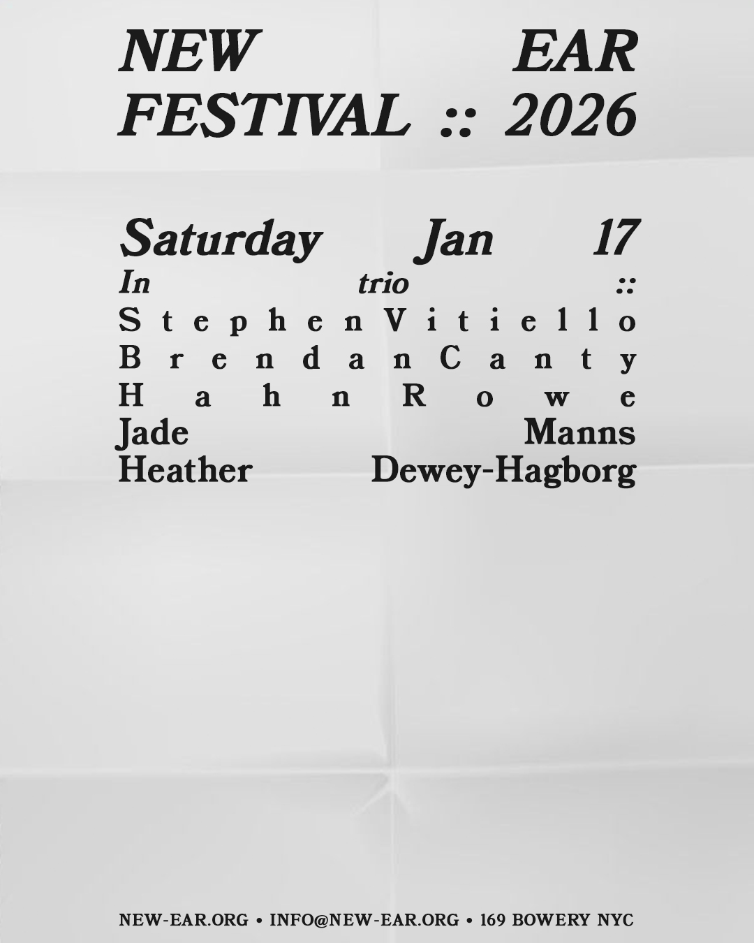 The annual New Ear Festival fulfills one of New Ear Inc.’s core missions—to help restore creative, experimental spirit on the ground floor level of downtown Manhattan. The festival showcases time-based art in all its forms—from sound installations and video screenings to storytelling and physical movement. Each evening will be live-streamed via Wave Farm / WGXC-90.7 FM.