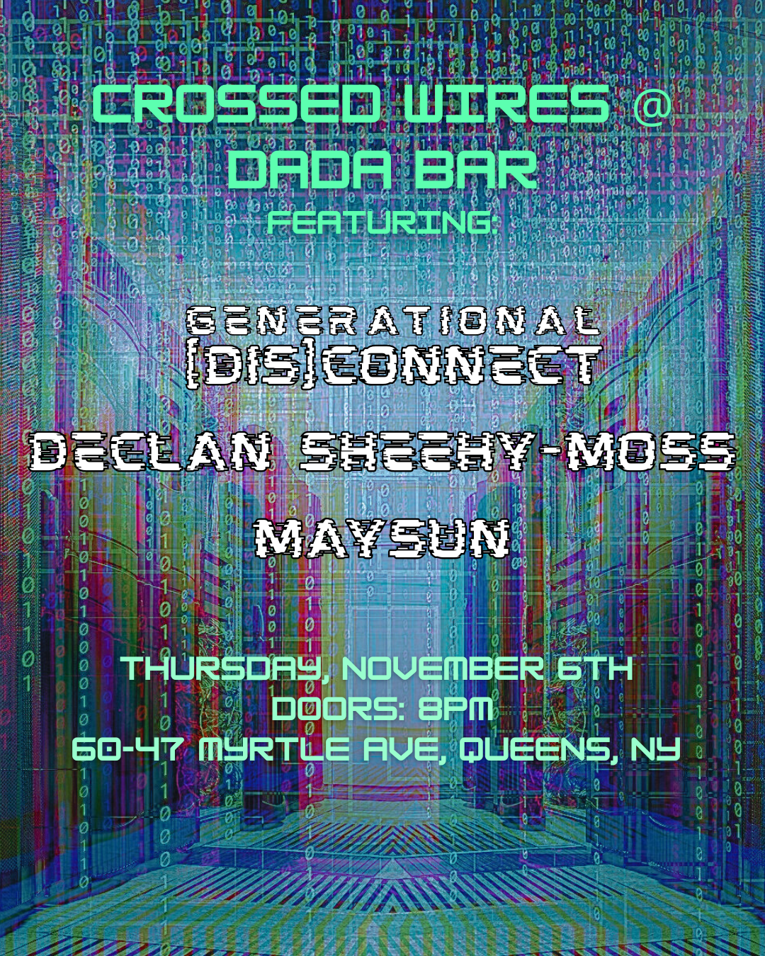 In a world of endless distraction, division, and isolation, Generational [Dis]connect invites the listener to seek respite in an immersive, and at times cacophonous collection of the sounds of computing and internet past, harkening back to when one literally had to hang up the phone in order to gain access. The duo features purely digital and acoustic elements, and seeks to explore the temperamental balance of the organic and inorganic in modern society as well as within the conception of self. The set resides conflictingly between nostalgia for ancient digital footprints and our fleeting desire to emerge from the noise unscathed