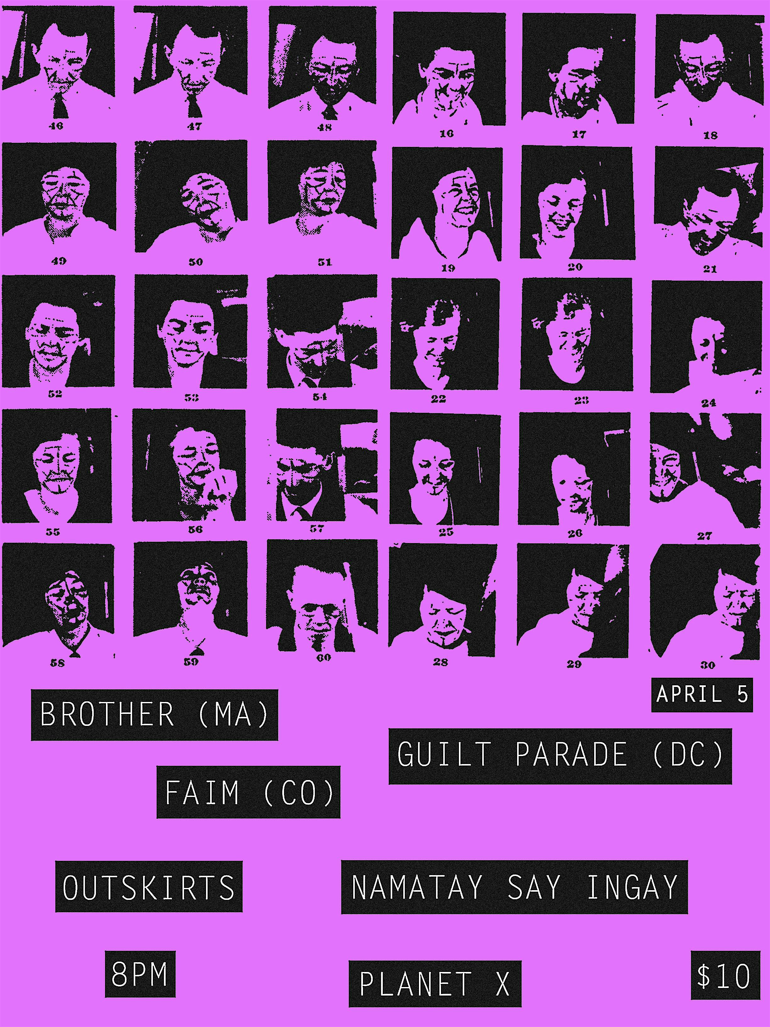 Brother, Guilt Parade, Faim, Outskirts, Namatay Say Ingay at Planet X