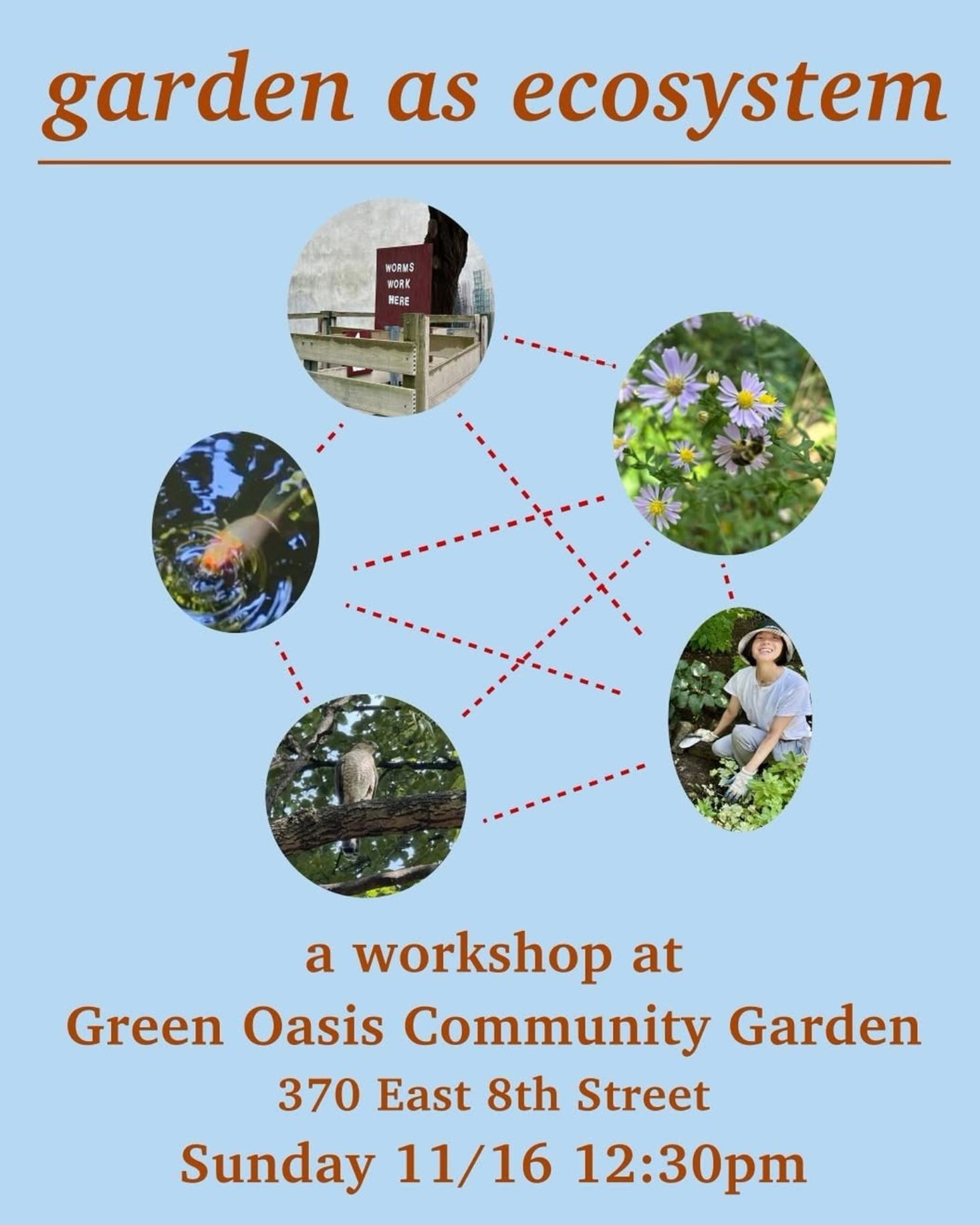 In this workshop, we will explore our garden from the perspective of the relationships within: the relationships between humans, plants, animals, and the land itself.