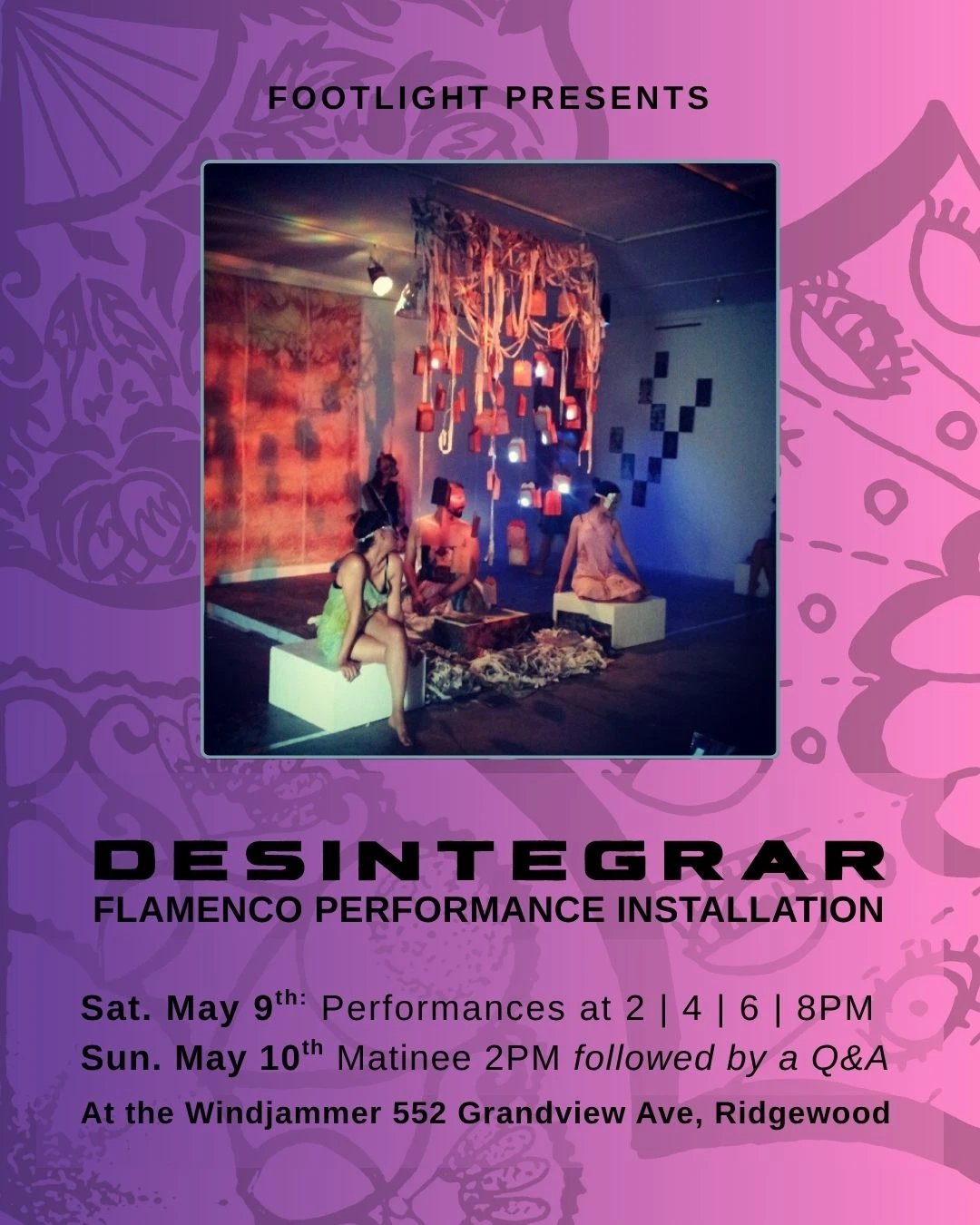 Desintegrar is a flamenco performance installation that blends sound, projection, and movement into an immersive experience. It isolates and reimagines the core elements of flamenco—dance, poetry, music, and rhythm—building them in layers that heighten tension and culminate in a powerful, explosive climax.