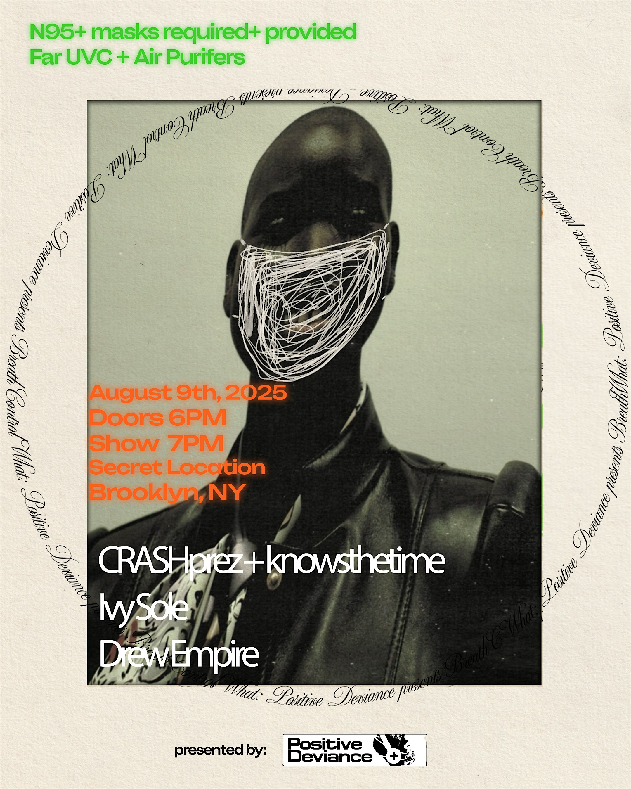 A Mask-Positive Hip Hop Show featuring CRASHprez + knowsthetime, Ivy Sole, and Drew Empire.