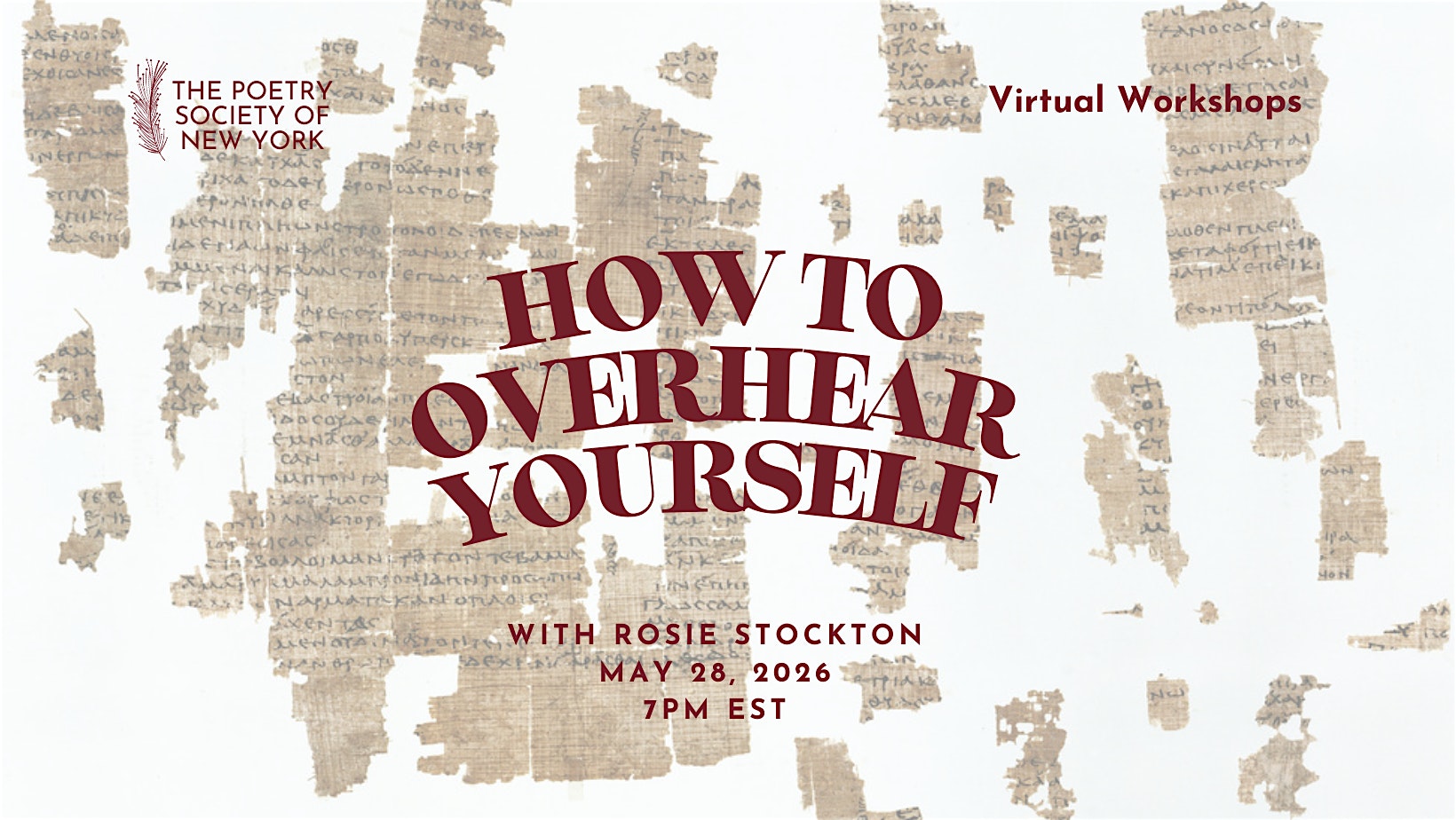 Part of The Poetry Society of New York's Weekly Virtual Workshop Series.