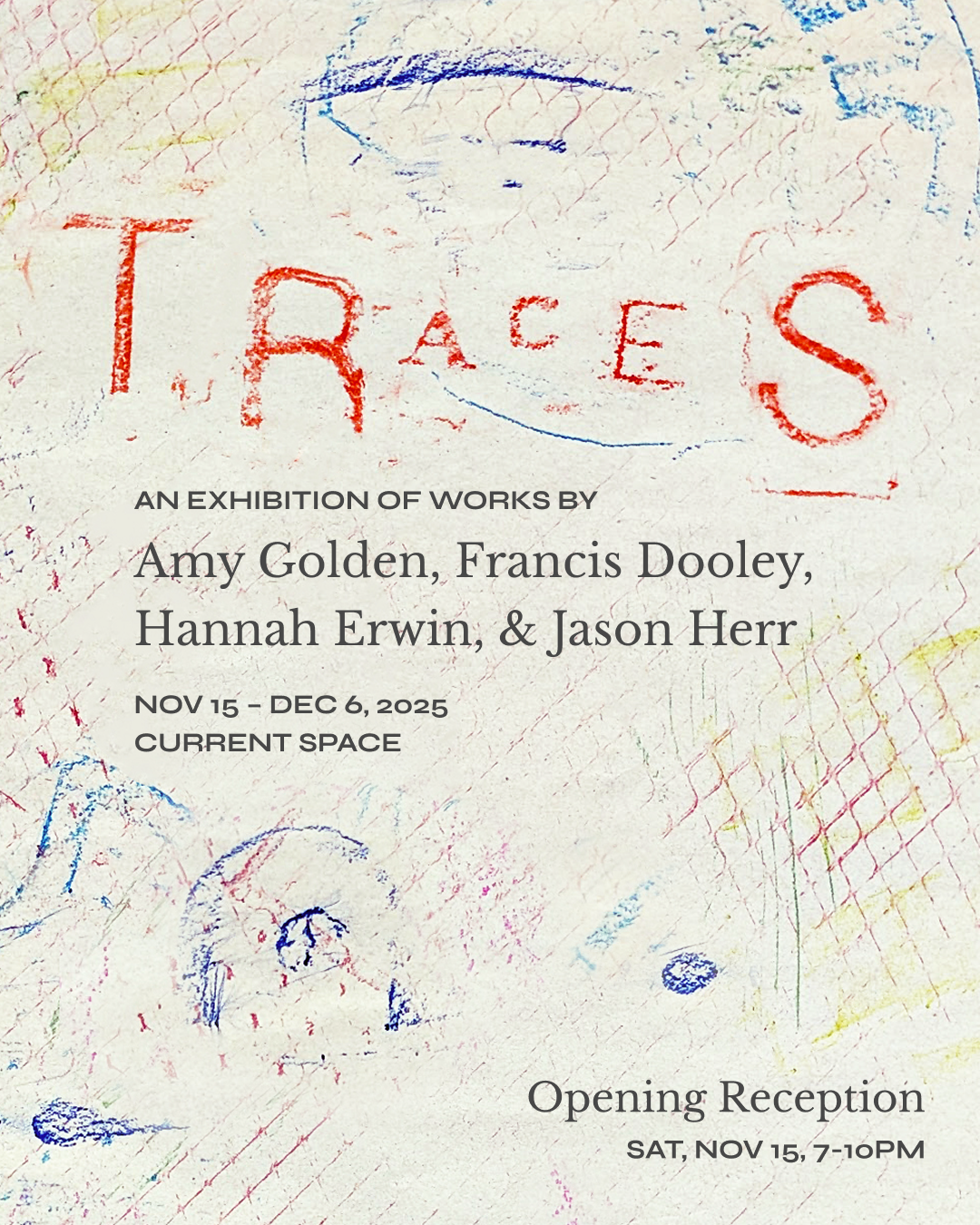 Current Space is proud to present "Traces," an exhibition of works by Amy Golden, Francis Dooley, Hannah Erwin, and Jason Herr. Please join us for the Opening Reception on Saturday, November 15th from 7-10pm!