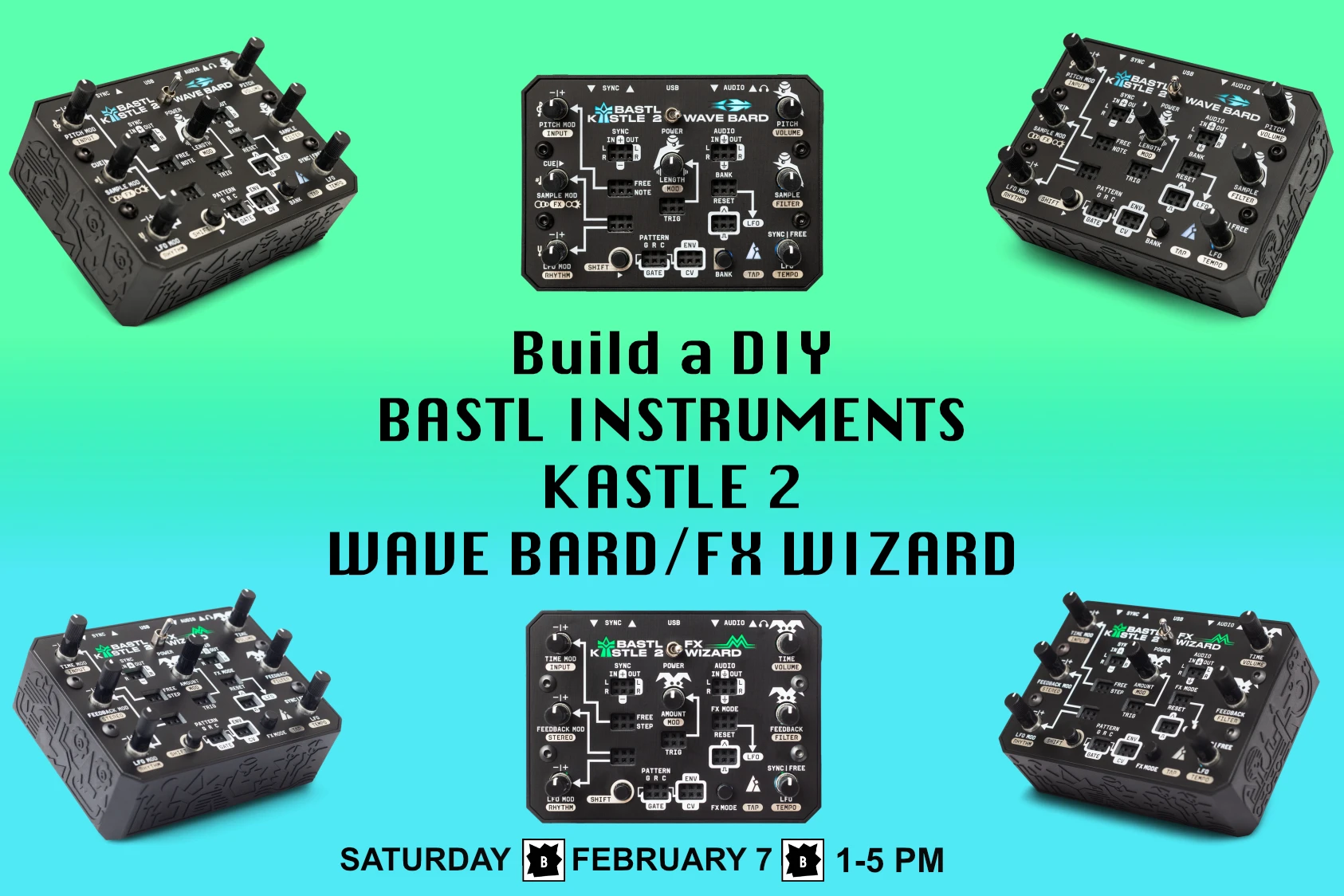 (No discount tickets are available - price covers parts for the kit plus a small amount extra that was used to purchase parts for the library's very own KASTLE 2 WAVE BARD / FX WIZARD kit, which will be available in the studio or lending collection following the workshop.