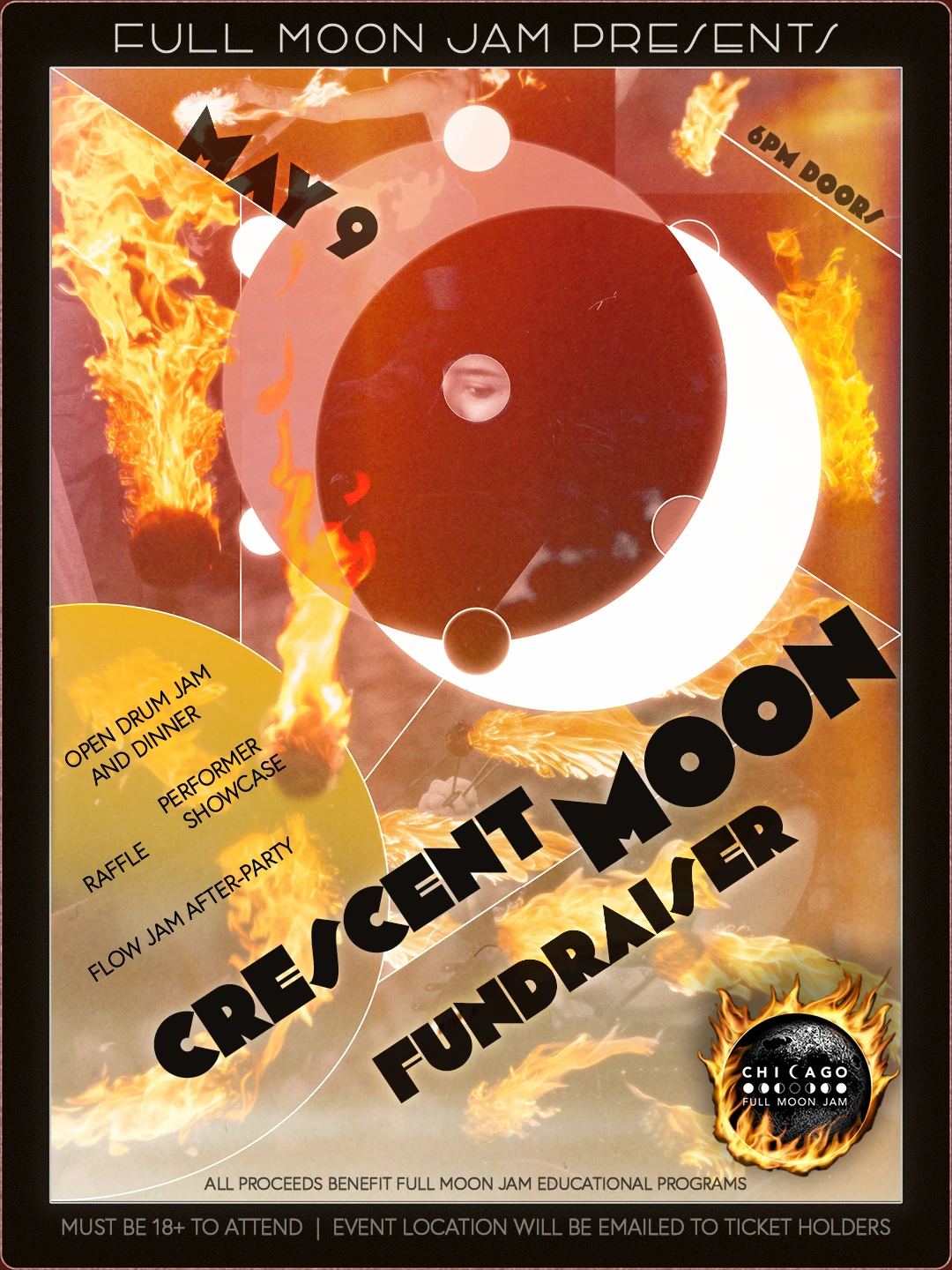 Join us on May 9th, 2026, for the Full Moon Jam's Crescent Moon Fundraiser - a community gathering, showcase, and dance party to celebrate the approach of the summer season!
