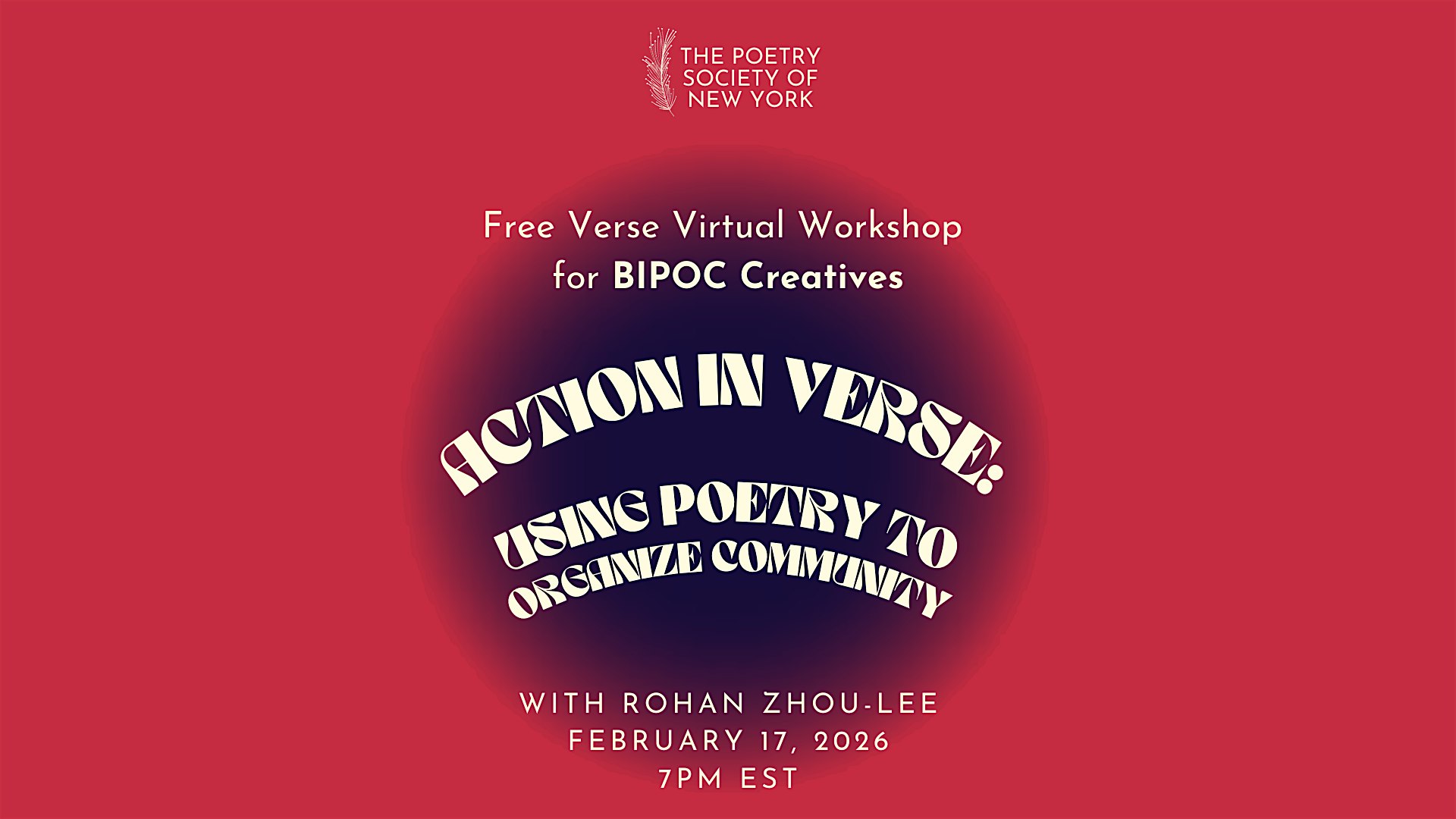 Join us at February 2026's Free Verse Virtual Workshop for BIPOC Creatives with Rohan Zhou-Lee (rescheduled)!