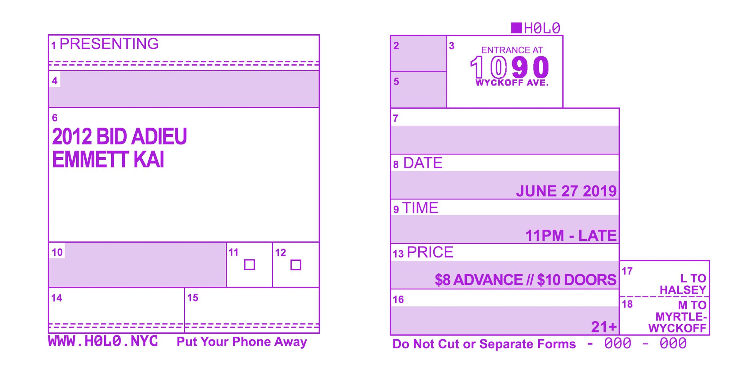 FULL LINE-UP: 2012 BID ADIEU, EMMET KAI