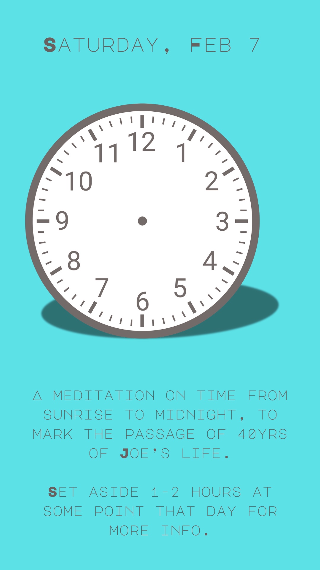 On Feb 7th, for my 40th Bday, I’m planning to meditate on the relentless flow of time with my friends in the way I most enjoy; an overly complicated series of micro events throughout the city. It will start somewhere along the East River at sunrise and end somewhere in Bushwick after midnight. I’m scheming a performance at each location, some form of activity for transit, some food & bev stops, etc. I’m not expecting anyone except myself to come for more than a single segment, although if you’re ambitious… for now, just save the date or let me know if you aren’t available at all that day and I’ll share more next week.