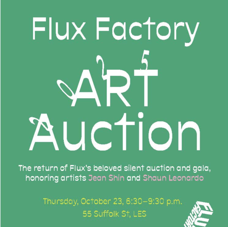 We'll feature over 50 artworks from Flux's community for silent art auction. Enjoy the lovely rooftop view of downtown Manhattan with a catered open bar, gathering 150 of Flux's supporters, artists and community members. This annual fundraiser makes Flux's free public programs and affordable artist residency possible.