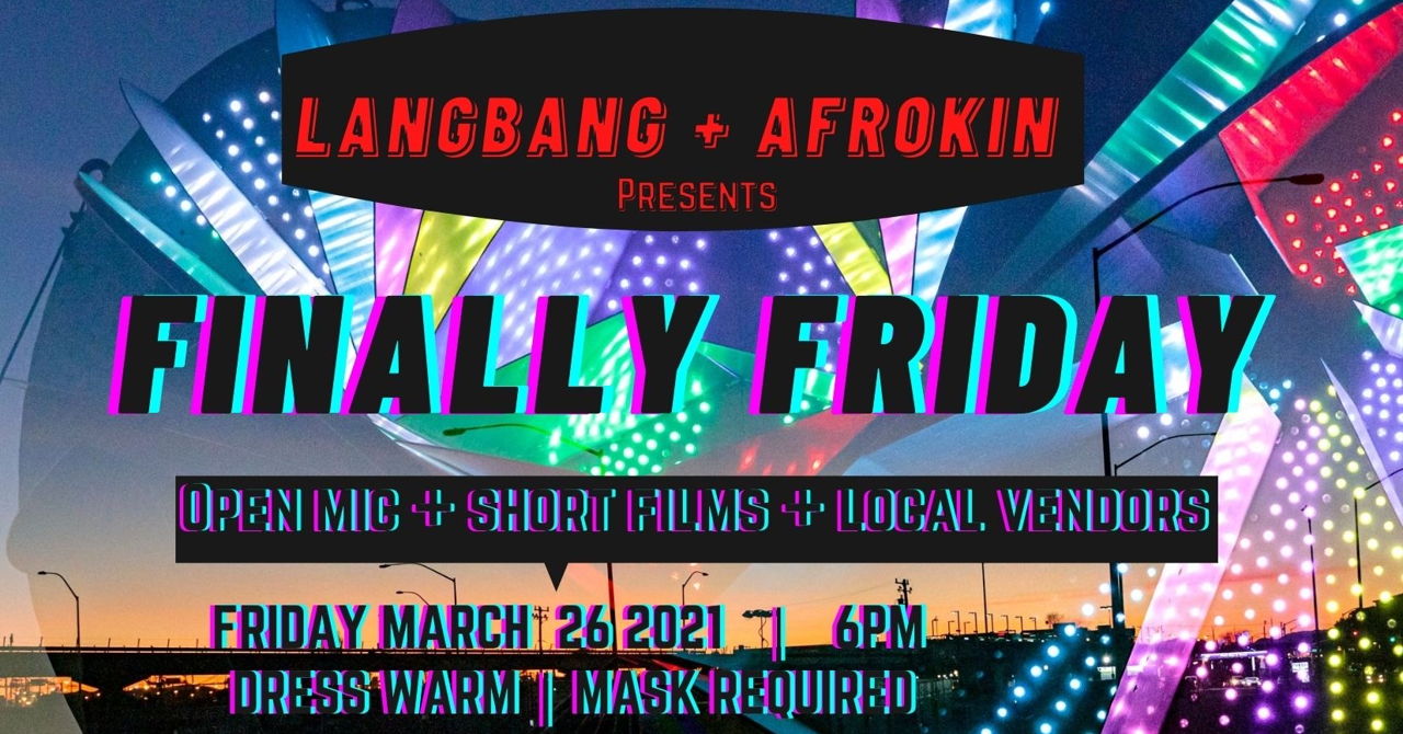 It’s been a long month, just like every month. So Langbang & Afrokin have decided to celebrate that we’ve made it. Our monthly event to brings film, performance, and community together under the relief of that FINALLY FRIDAY!