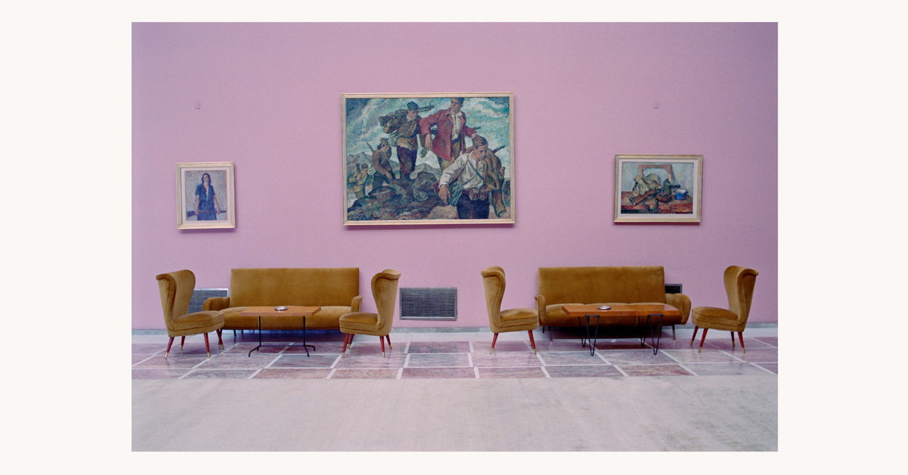 "Stagecraft" features four extensive bodies of the photographer's work, spanning from the early 2000s to today—photographs of the Yugoslav socialist modernist hotel spaces from her internationally recognized series "Hotels"; photographs of the ceremonial space of the Yugoslav Presidential Palace in Belgrade from the series "Collection/Kolekcija" and the recent "Fabrics of Socialism" and "Sites of Memory" series exploring the archives of the Museum of Yugoslav History.