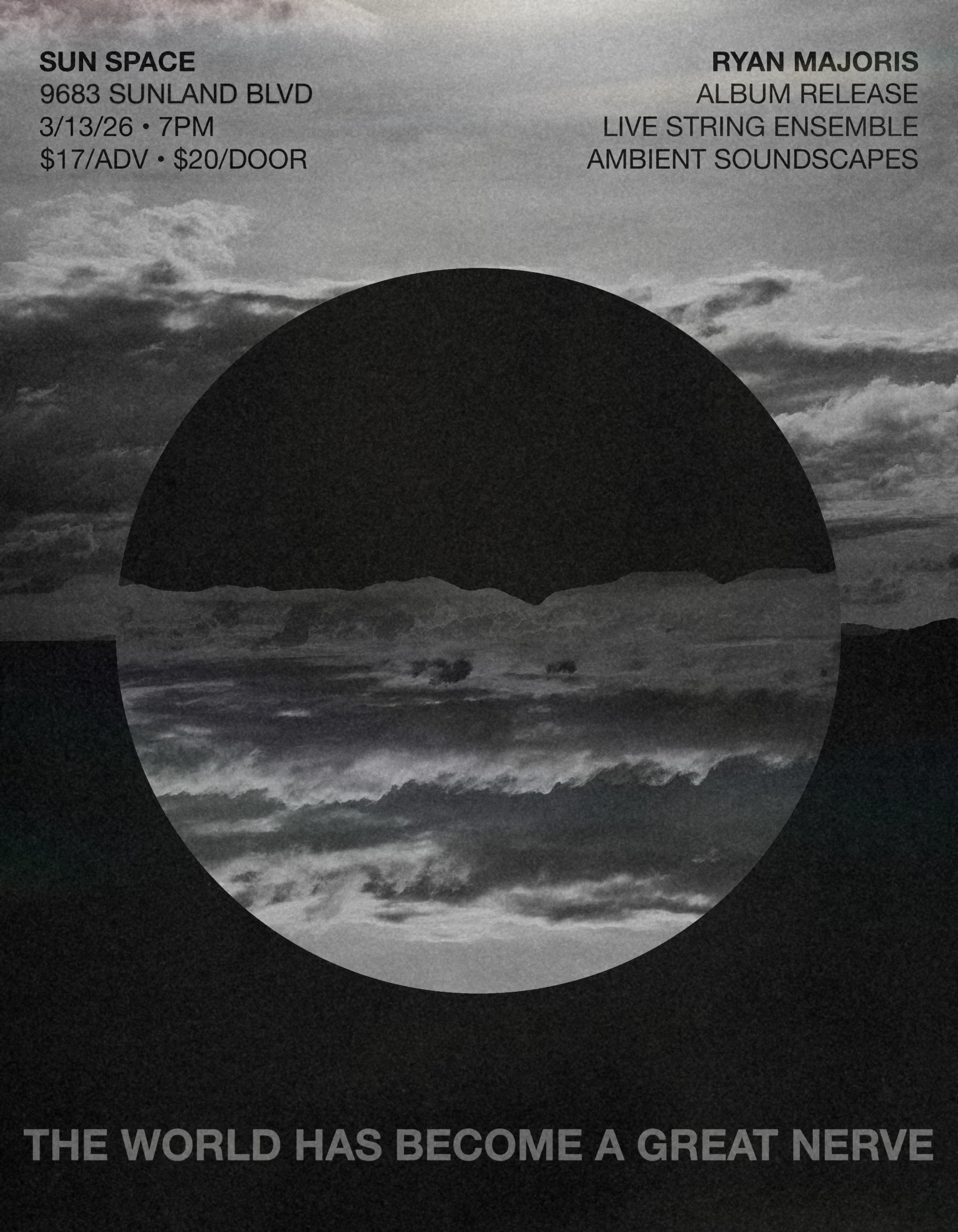 Join us for an evening celebrating the release of Ryan Majoris' new album, "The World Has Become a Great Nerve". A meditation on connectivity in its many forms, and the seismic shifts technology is carving into our cultural landscape.