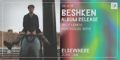 6PM - 10PMlong-time nyc musician beshken blends east and west coast vibes to create a unique vibe ~ mixing indie rock, dance music, and jazz, the unexampled blending of genres is only increasing his popularity. coming off of his successful singles "passion" and "white gemini", he is releasing his debut album 'aisle of palm' the day he plays zone one at elsewhere