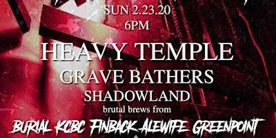 BEER WEEK BANGOVER! Come celebrate the end of beer week with heavy tunes & heady pours. Beer pours from 6 to 8 (w/ ticket), show at 8.