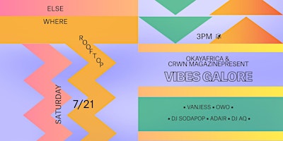 OkayAfrica and CRWN magazine present: Vibes Galore! Come party with us after #CurlFest on the rooftop at Elsewhere this July 21st at 3:00 PM for some summertime fun. The day party will feature performances by the amazing musical duo, VanJess, known for their sultry nineties inspired r&b music, and OWO, who is known for her soulful blend of afro, electro and r&b sounds. Vibes provided by DJs Sodapop, ADAIR and AQ will keep you moving all night long! Join us and enjoy a day of dancing, drinks, and black flyness!Performances: └ VanJess└└ OWODJs: └DJ Sodapop└└ ADAIR└└└ DJ AQ