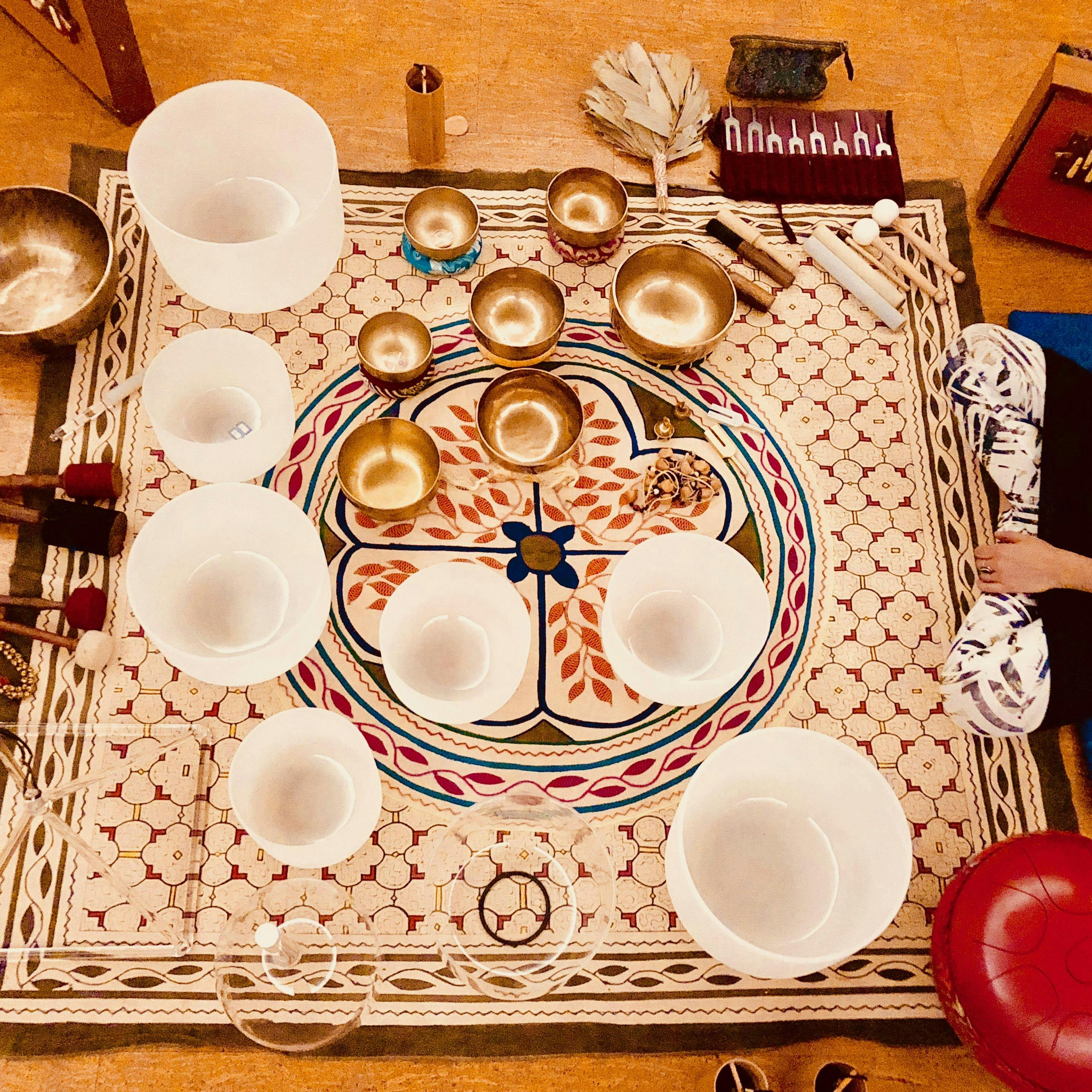 In the past five years, sound healing has gone from fringe new-age modality to a popular form of meditation, known ubiquitously as the “sound bath,” and featuring instruments such as Himalayan and crystal singing bowls, tuning forks, gong, drum, chimes, and other drone-producing instruments. In the first session of this series, we’ll examine the anatomy of the sound bath, why sound therapy has garnered so much recent attention, and how sound is used as a tool for rest, mindfulness and transformation. One of the foundations of working with sound therapeutically is the practice of deep listening. By slowing down and engaging the entire listening body, we enter into sound in a way that can bring us to higher states of consciousness. Combining deep listening with the use of drone instruments, we create the potential for relaxation, where healing and reset of our nervous system can occur.
