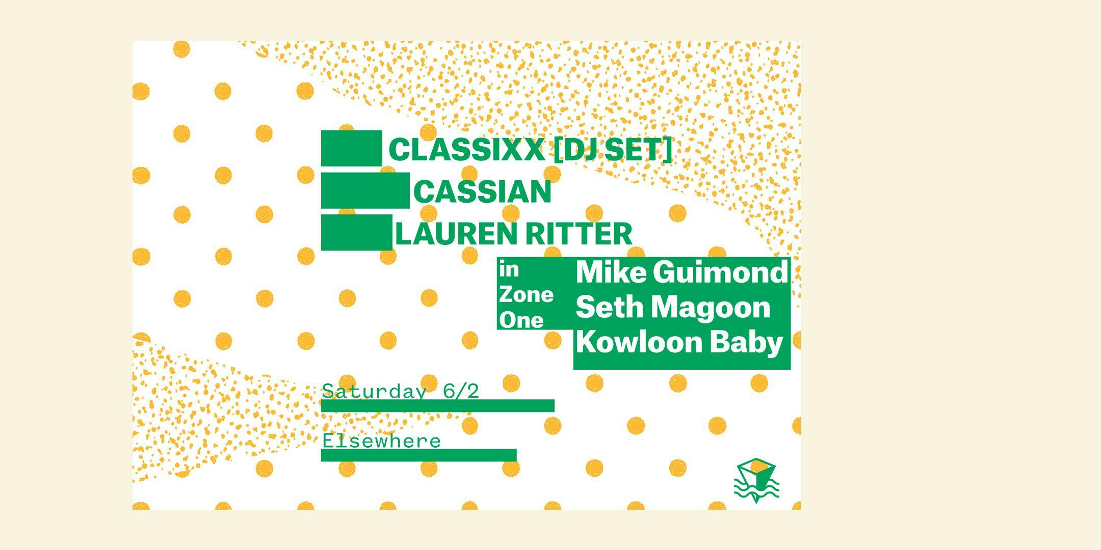 HALL└ Classixx (DJ Set)└ └ Cassian└└└ Lauren RitterZONE ONE└ Mike Guimond└└ Seth Magoon└└└ Kowloon Baby