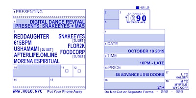 FULL LINEUP:Reddaughter615bpmUshamami (DJ set)afterlife.onlinesnakeeyes (DJ set)Flor2kFoodCorp (DJ set)Morena Espiritual