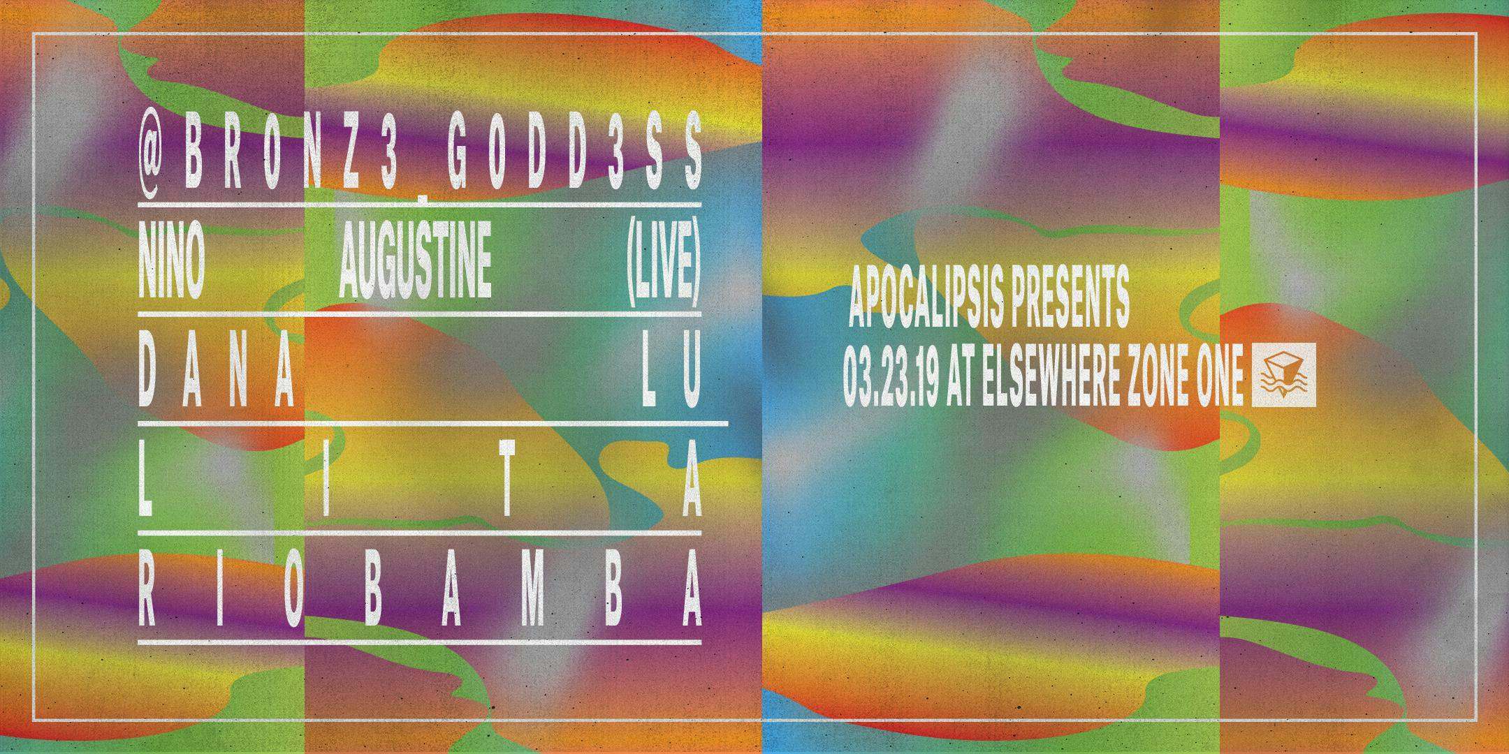 Dedicated to amplifying and celebrating the sounds of música urbana (reggaeton, dembow, latin trap and beyond), APOCALIPSIS is a label and creative agency founded by Discwoman signee Riobamba. Following a groundbreaking Boiler Room appearance as the streaming platform's first ever reggeaton showcase, Riobamba and her label continue to provide a platform for Latinx artists. On Saturday, March 23, the label will celebrate Panamian rapper Nino Augustine's latest release, "Agua." Joining Nino and Riobama are DJ/model and activist br0nz3_g0dd3ss, Dana Lu, and Lita.