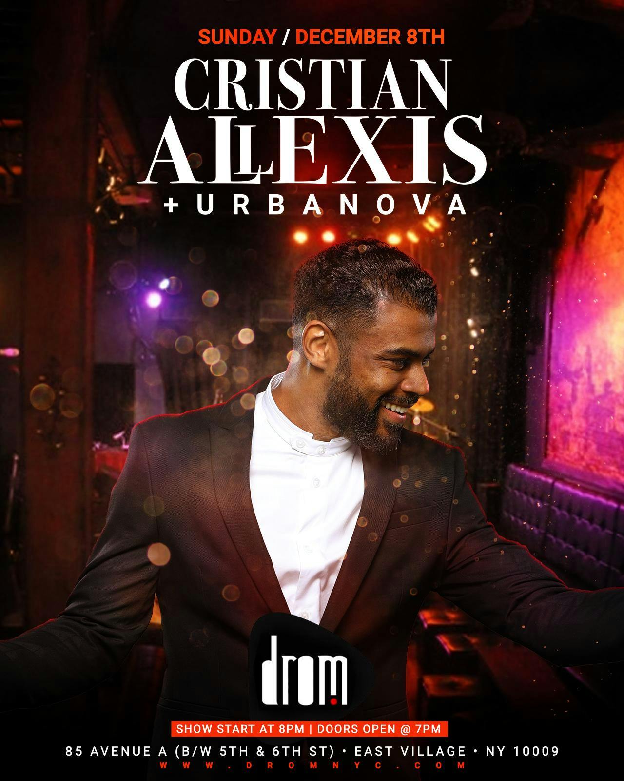 Cristian Allexis & Urbanova perform LIVE at DROM in the East Village, NYC on Sunday, December 8th!