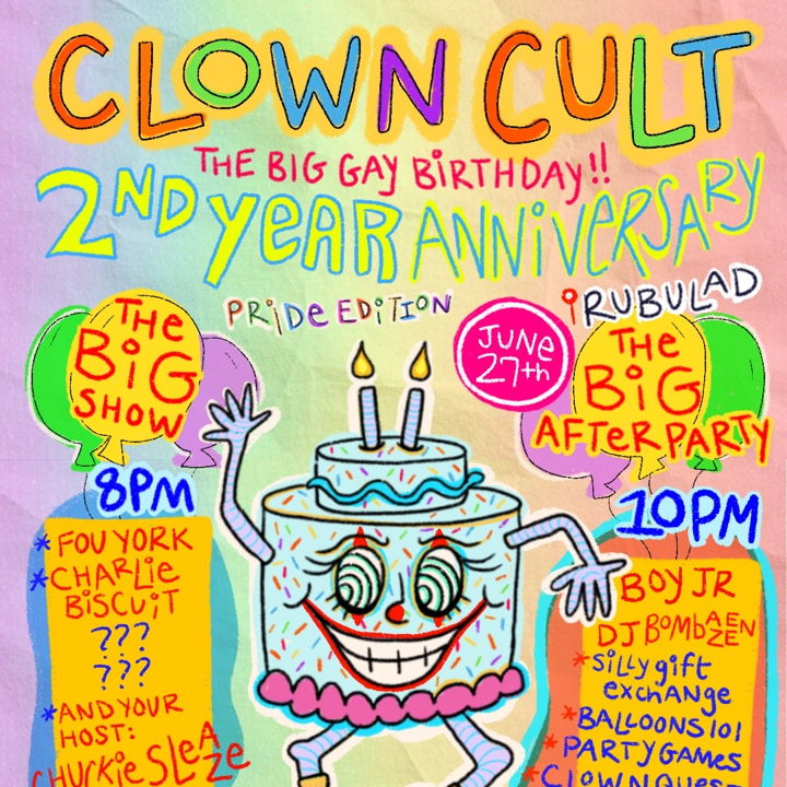 🎂🌈ANNOUNCING🌈🎂 Our TWO YEAR ANNIVERSARY aaaand PRIDE EDITION: THE BIG GAY BIRTHDAY PARTY 🌈🤡🎂🤡🌈
