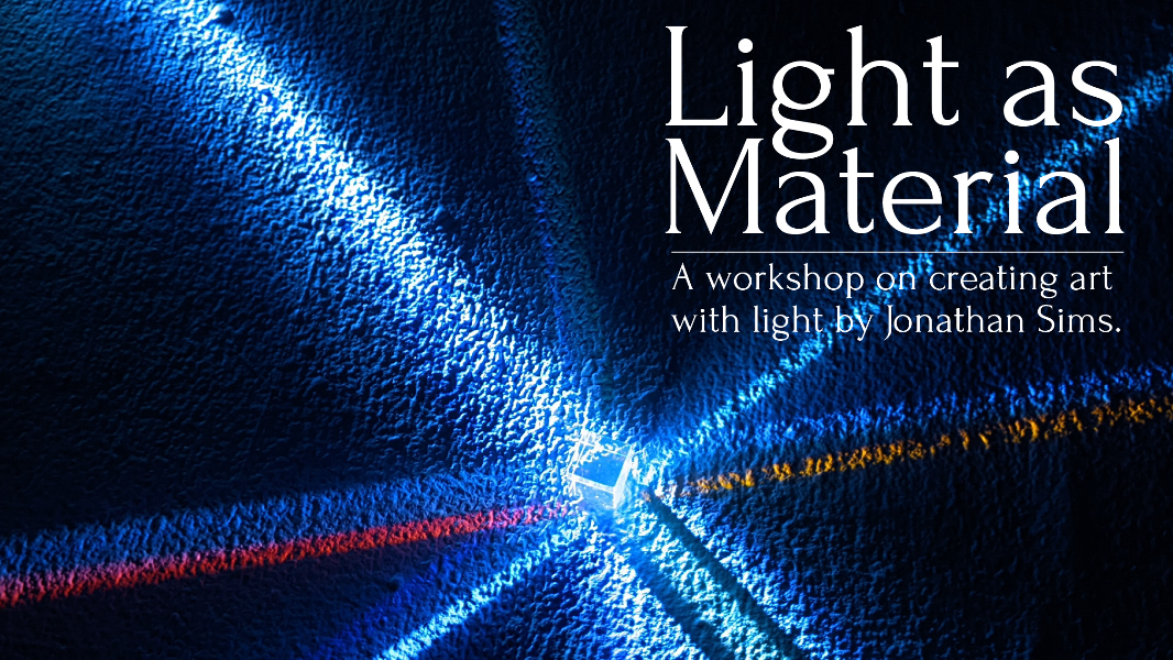 Join Jonathan Sims as he shares a wide variety of light sources, lenses, mirrored surfaces, gobos, filters, prisms, and more that he has used in his explorations of light as a material and medium for art. Workshop participants will learn about the history of light art and have time to explore the capacity of each object and will work together to devise their own light art installations.